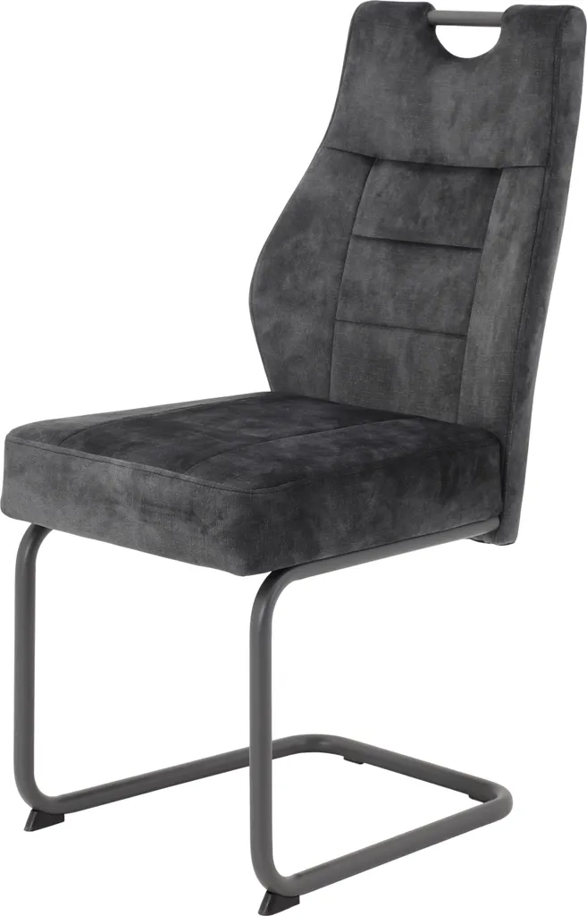 2er Set Esszimmerstuhl Linda – Samtvelour Vintage Anthrazit – Metallgestell Rundrohr Pulverbeschichtung Grau – 140kg Belastbar