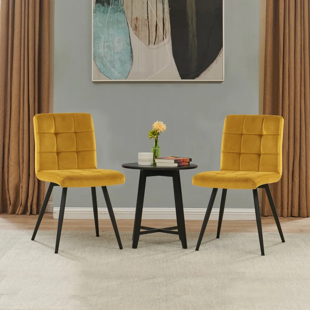 2er Set Esszimmerstuhl Polsterstuhl Stoff Samt Oder Stoff Lederoptik, Farbe:Gelb, Material:Samt