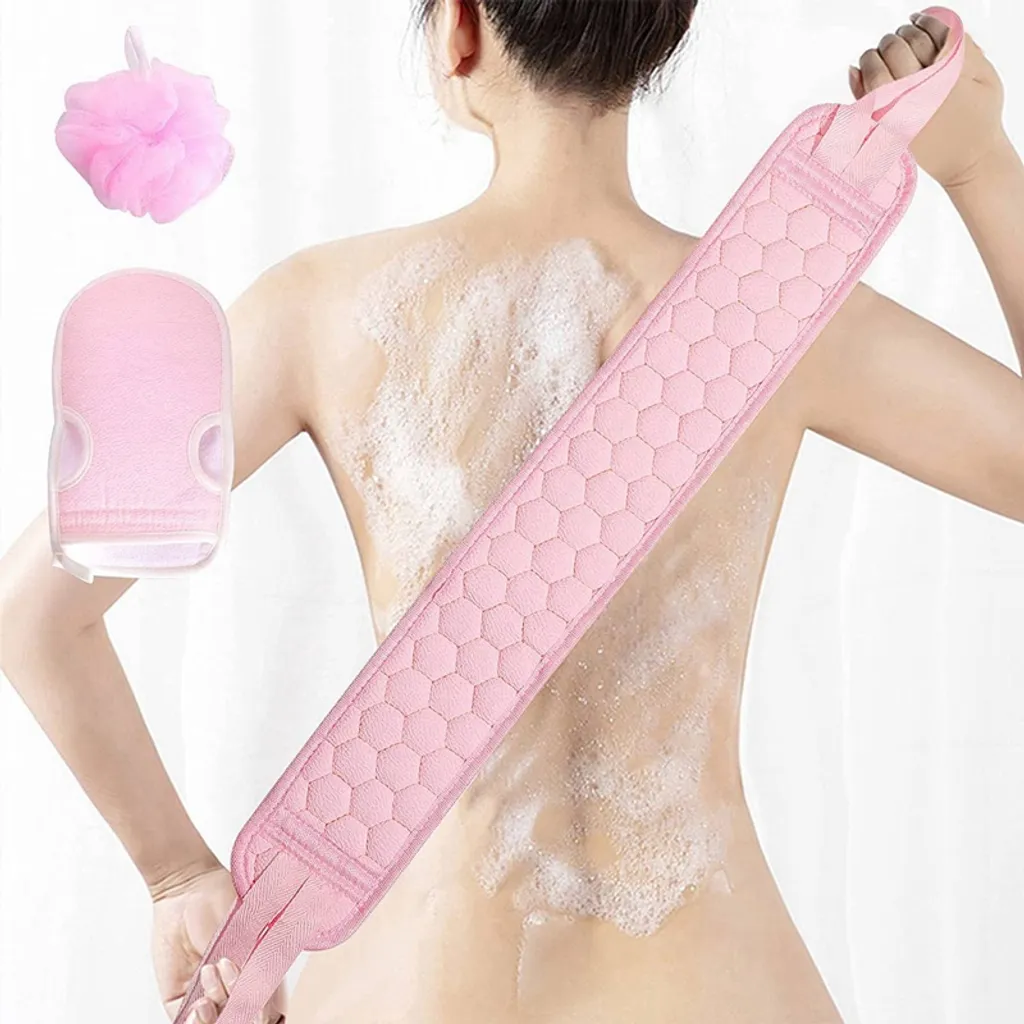 3 Stück/Set Peeling-Handschuhe Und Luffa-Schwamm Zurückversetztes Badetuch(Rosa)