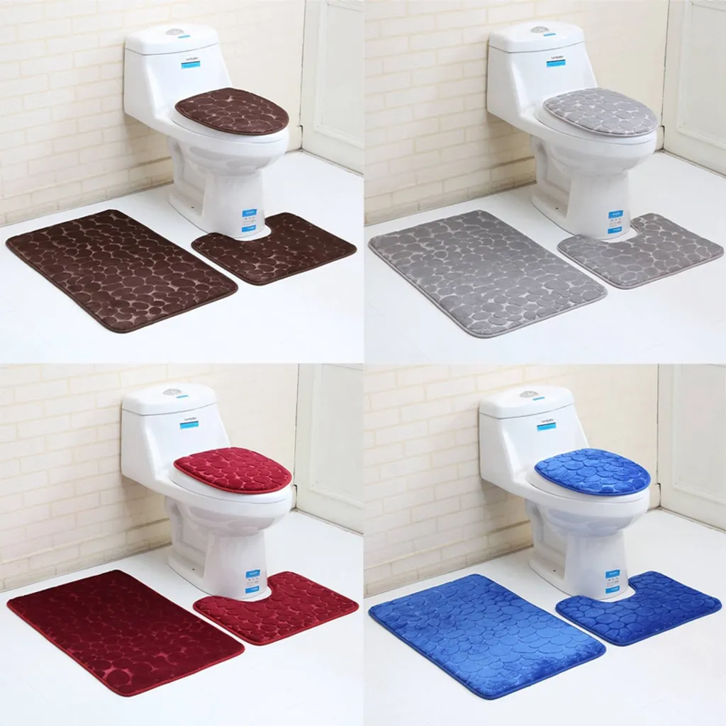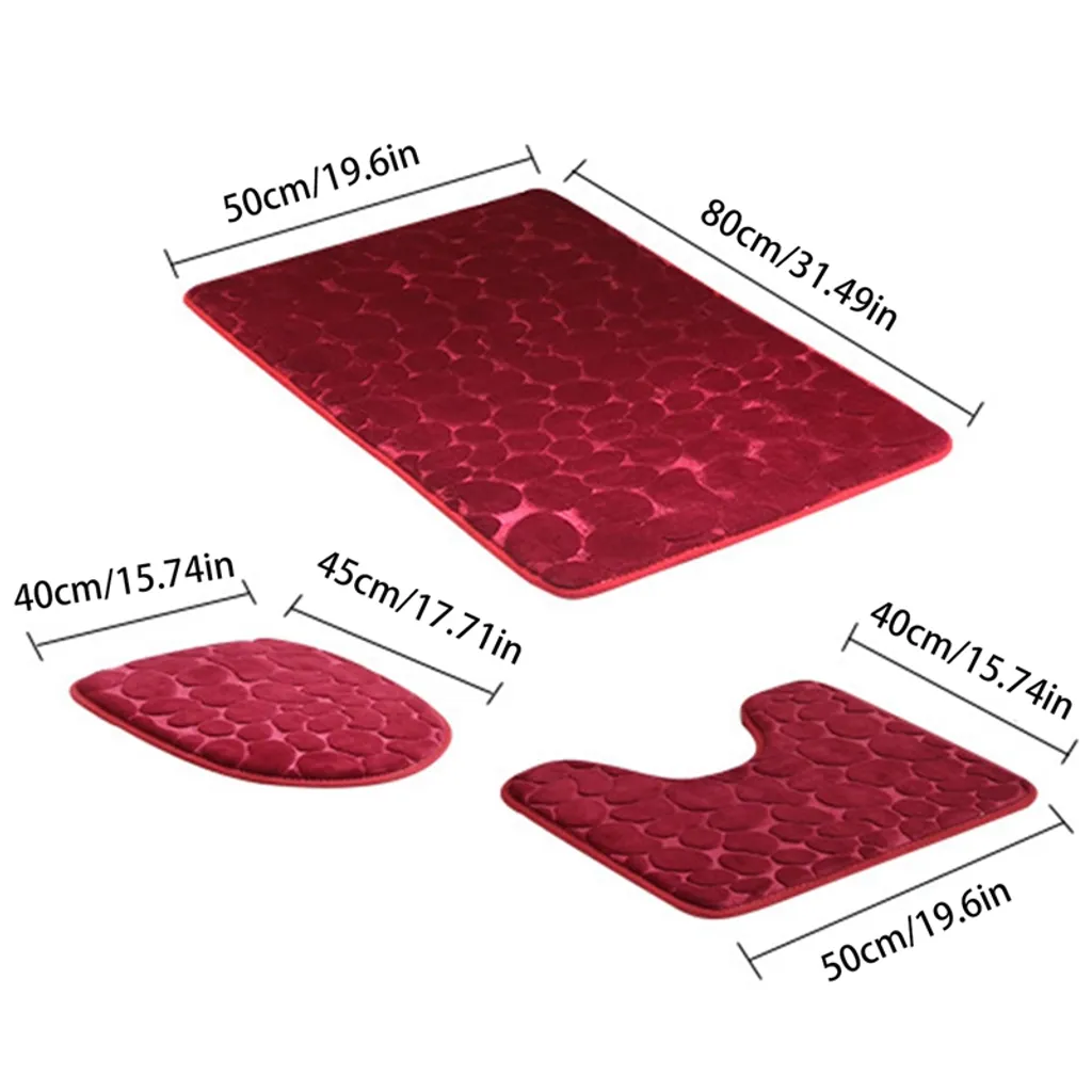 3-teiliges Badezimmer Badematten Toilettenteppich Anti Rutsch Teppich Set Heim Toilettenabdeckungsmatte (Blau)