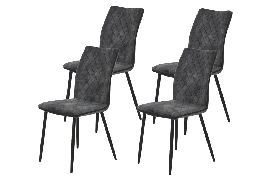 4er Set Esszimmerstuhl Pamela – Vintage Velvet Anthrazit Rautensteppung – Rundrohr Schwarz – 120kg Belastbar