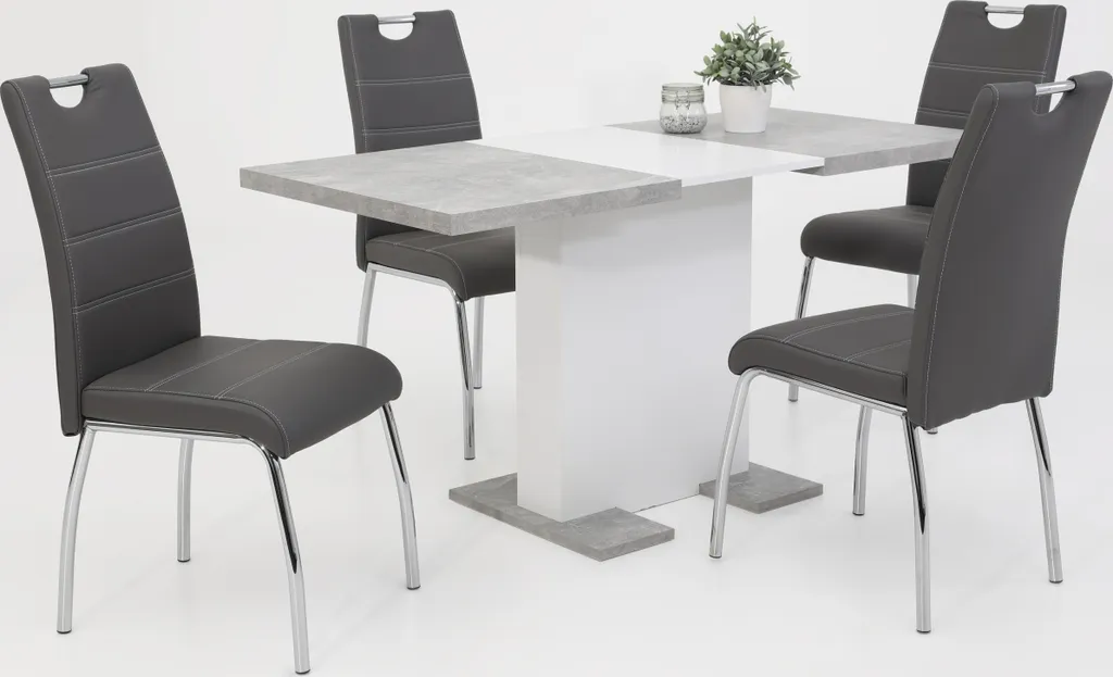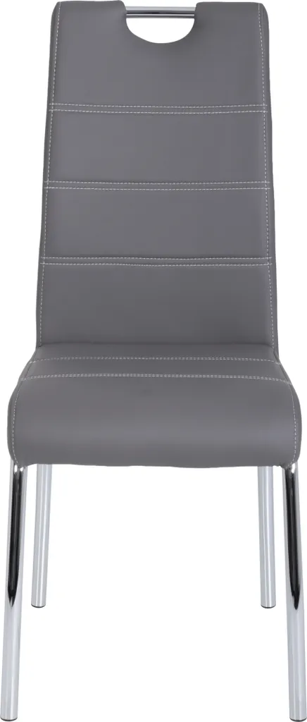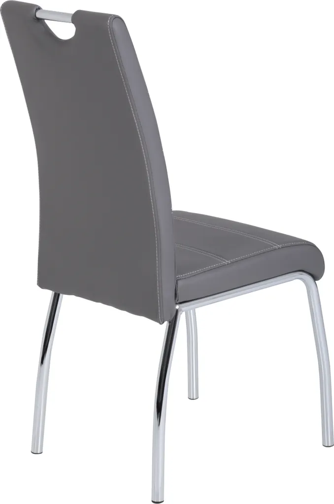 4er Set Vierfußstuhl Susi – Kunstleder Grau – Metallgestell Chrom – Bügelgriff – Belastbarkeit Ca. 120kg