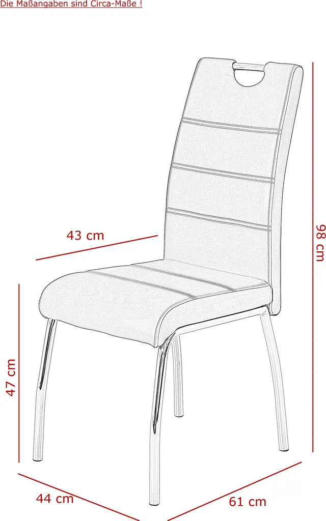 | Zusätzliche Varianten | 2er Set Vierfußstuhl Susi – Kunstleder Grau – Metallgestell Chrom – Bügelgriff – Belastbarkeit ca. 120kg, 4er Set Vierfußstuhl Susi – Kunstleder Grau – Metallgestell Chrom – Bügelgriff – Belastbarkeit ca. 120kg |