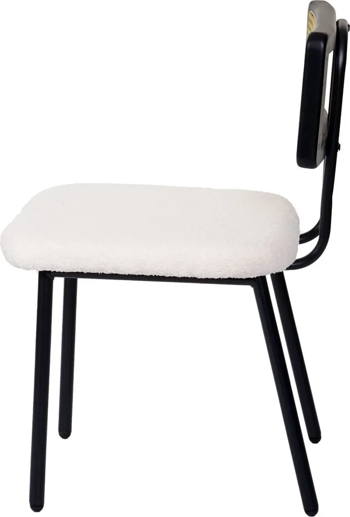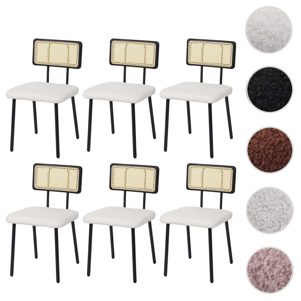 6er-Set Esszimmerstuhl MCW-K88, Lehnstuhl Stuhl, Holz Poly-Rattan Metall Bouclé Stoff/Textil Weiß