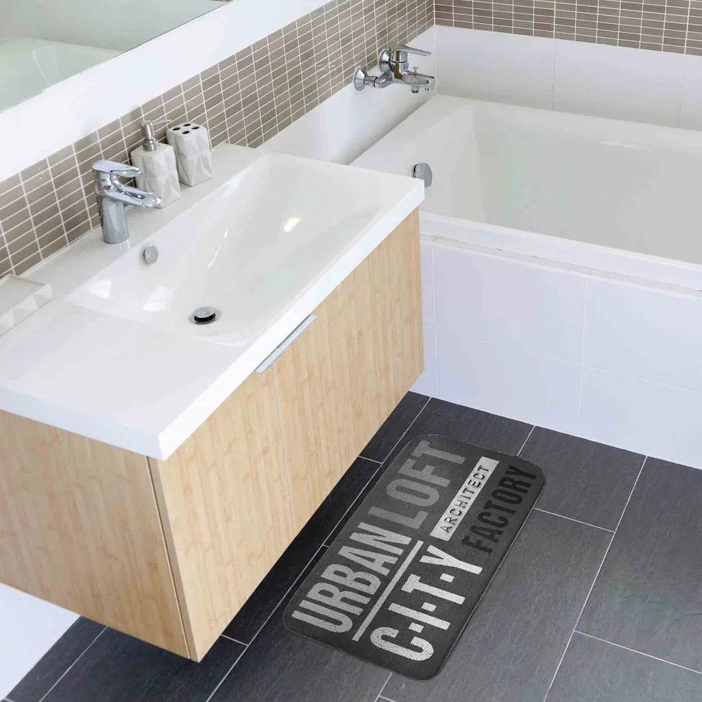 Badevorleger Duschmatte Grau Schwarz Mit Schrift Badteppich Antirutsch-Matte Vorleger Bad
