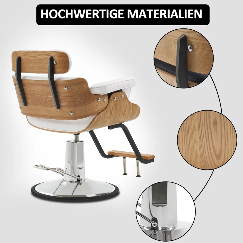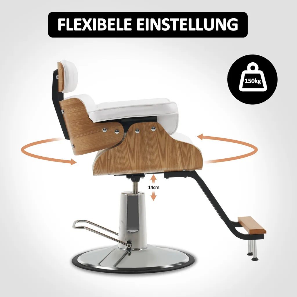 Barberpub Friseurstuhl Mit Kopfstütze, Friseursessel Höhenverstellbar Für Herren Damen, Friseureinrichtung Bedienungsstuhl Zuhause Vintage Retro, Kunstleder, 8261 (Weiß)