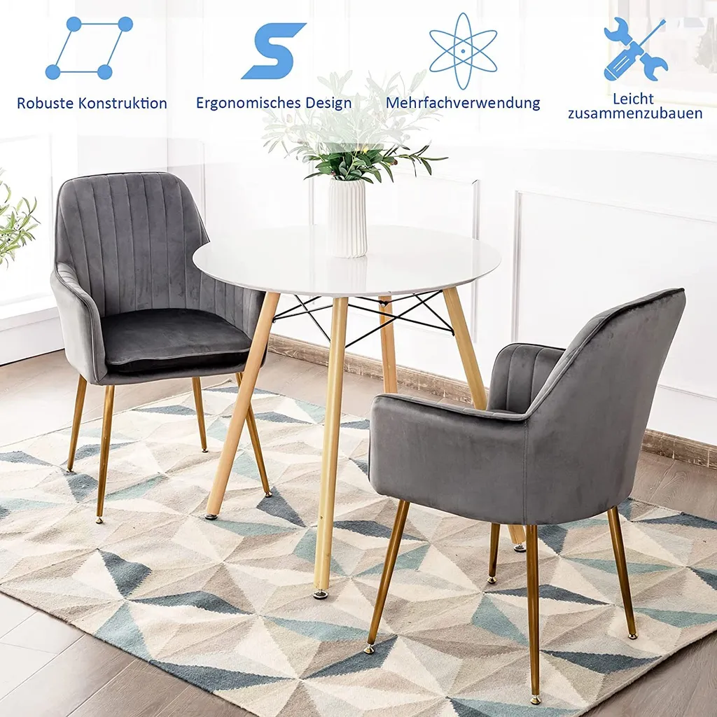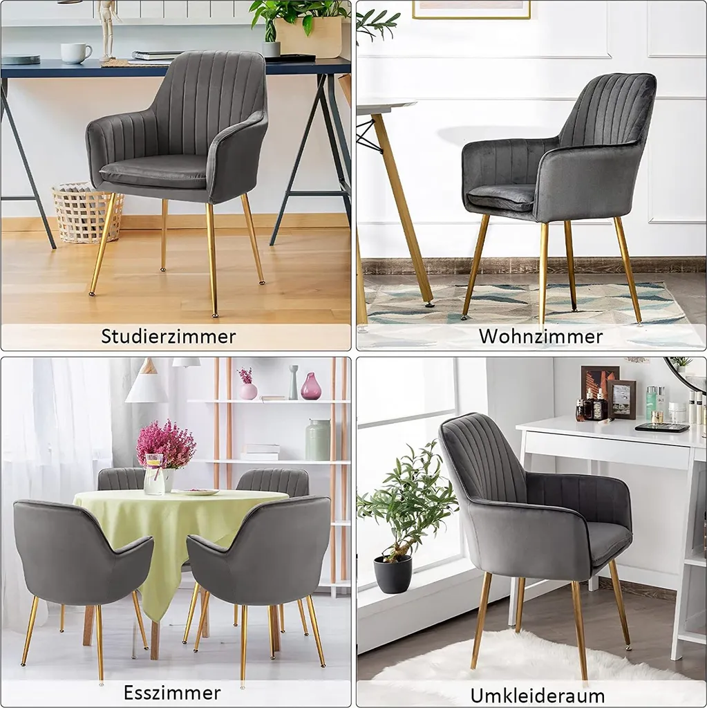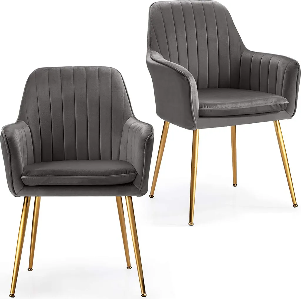 COSTWAY 2er Gepolsterte Esszimmerstühle,Samt Küchenstuhl Akzentsessel Mit Armlehnen & Rückenlehne,Polsterstuhl Wohnzimmerstuhl Mit Beinen In Goldoptik, Grau
