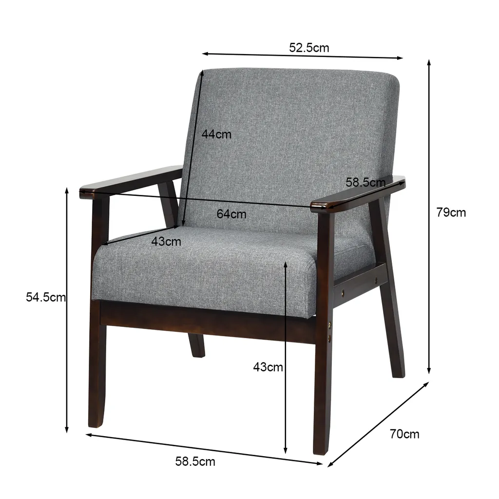 COSTWAY Akzentstuhl, Gepolsterter Stoffstuhl Mit Beinen Aus Kautschukholz, Sessel Für Wohnzimmer Büro Balkon Dunkelgrau