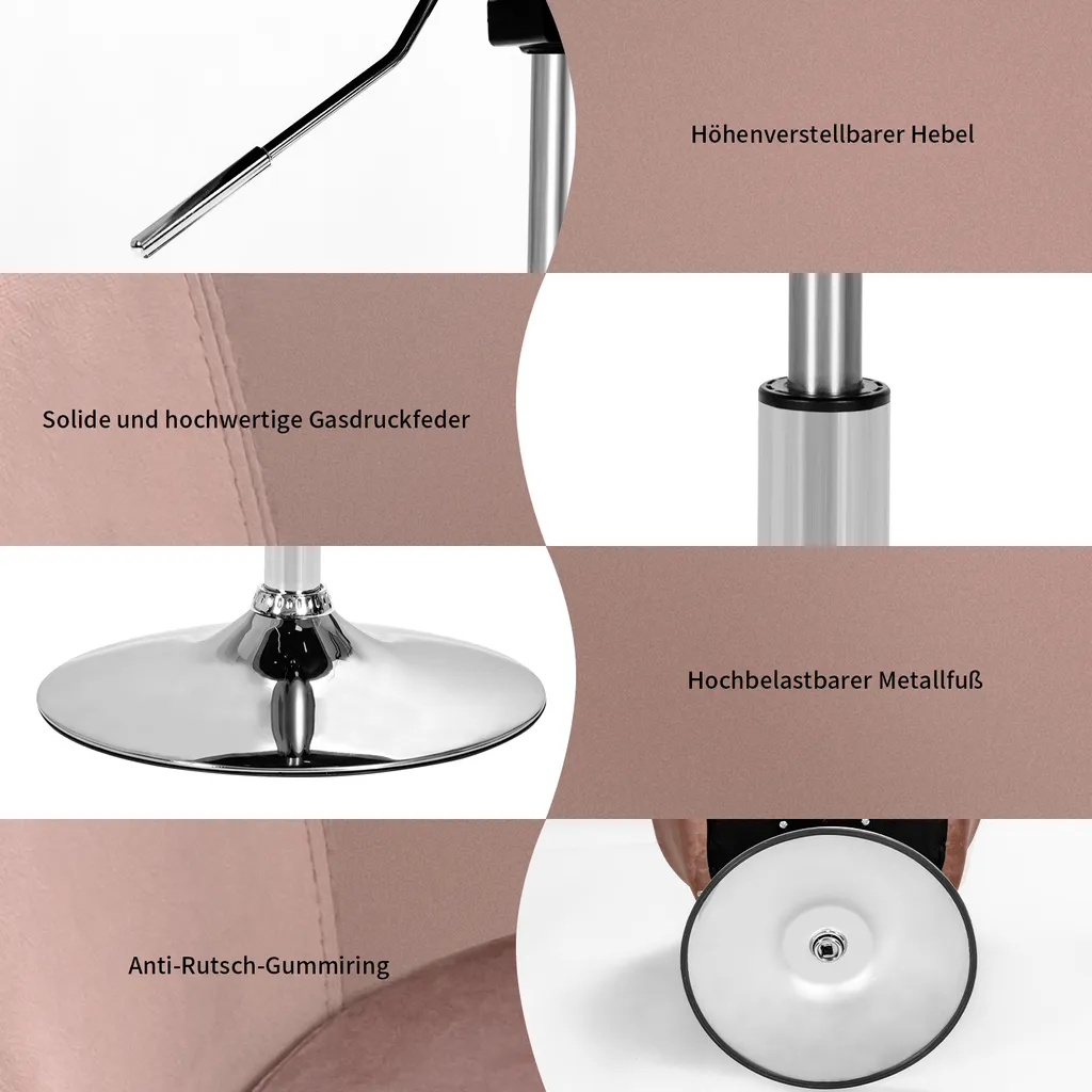 COSTWAY Akzentstuhl Höhenverstellbarer, Polsterstuhl 360°drehbar, Esszimmerstuhl Bis 120kg Belastbar, Samt Drehsessel (Rosa)