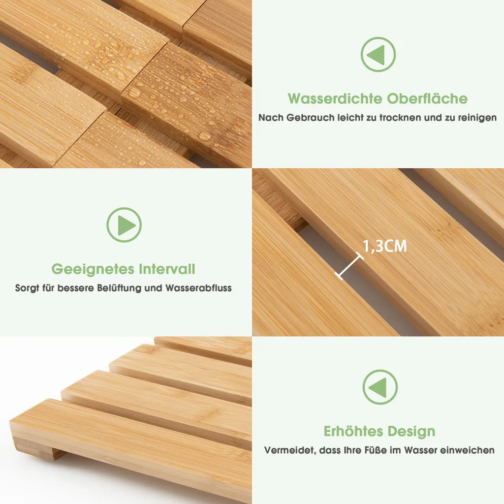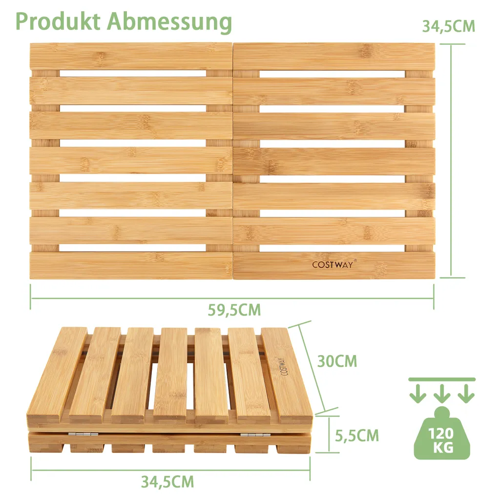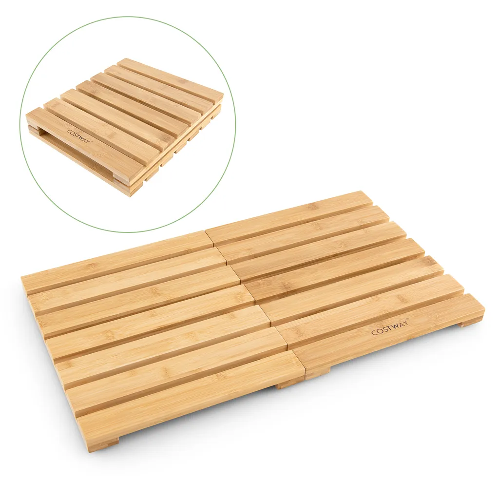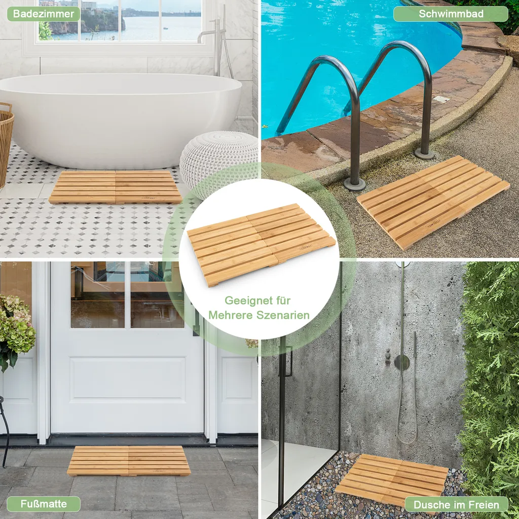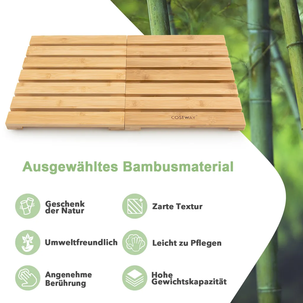 COSTWAY Faltbare Badematte Bambus Rutschfeste Duschmatte Tragbar Bodenmatte Für Badezimmer Spa Schwimmen & Pool 59,5×34,5cm