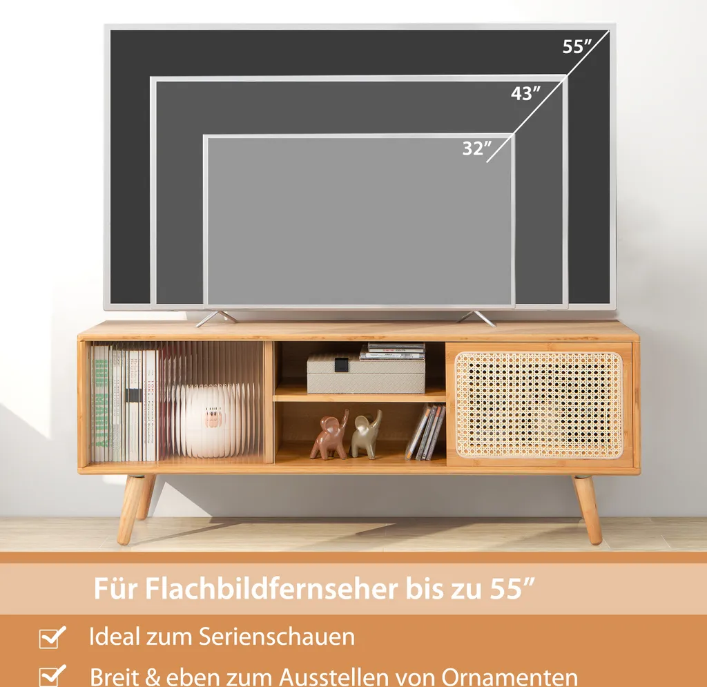 COSTWAY TV-Ständer TV-Schrank Für Fernseher Bis Zu 55 Zoll, TV-Lowboard Mit 2 Schiebetüren, Fernsehschrank Medienkonsole Für Wohnzimmer Schlafzimmer