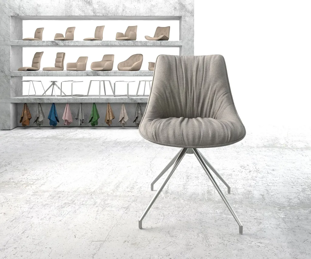 DELIFE Drehstuhl Elda-Flex Stripes Hellgrau Kreuzgestell Konisch Edelstahl 180° Drehbar