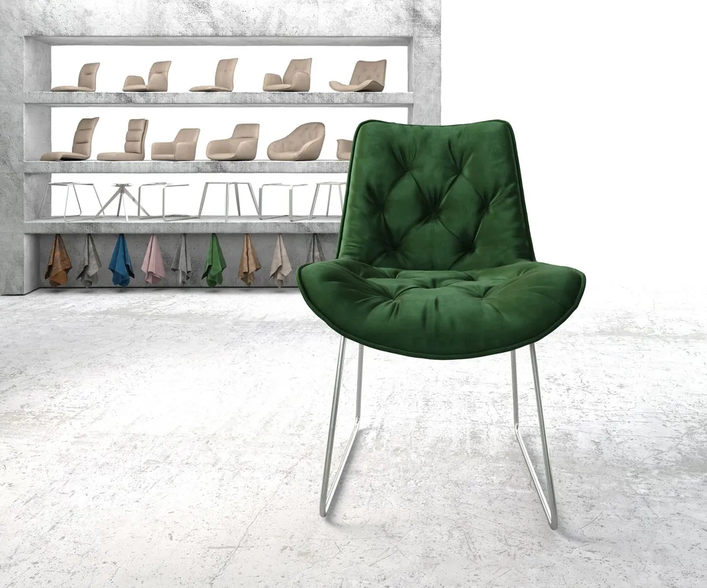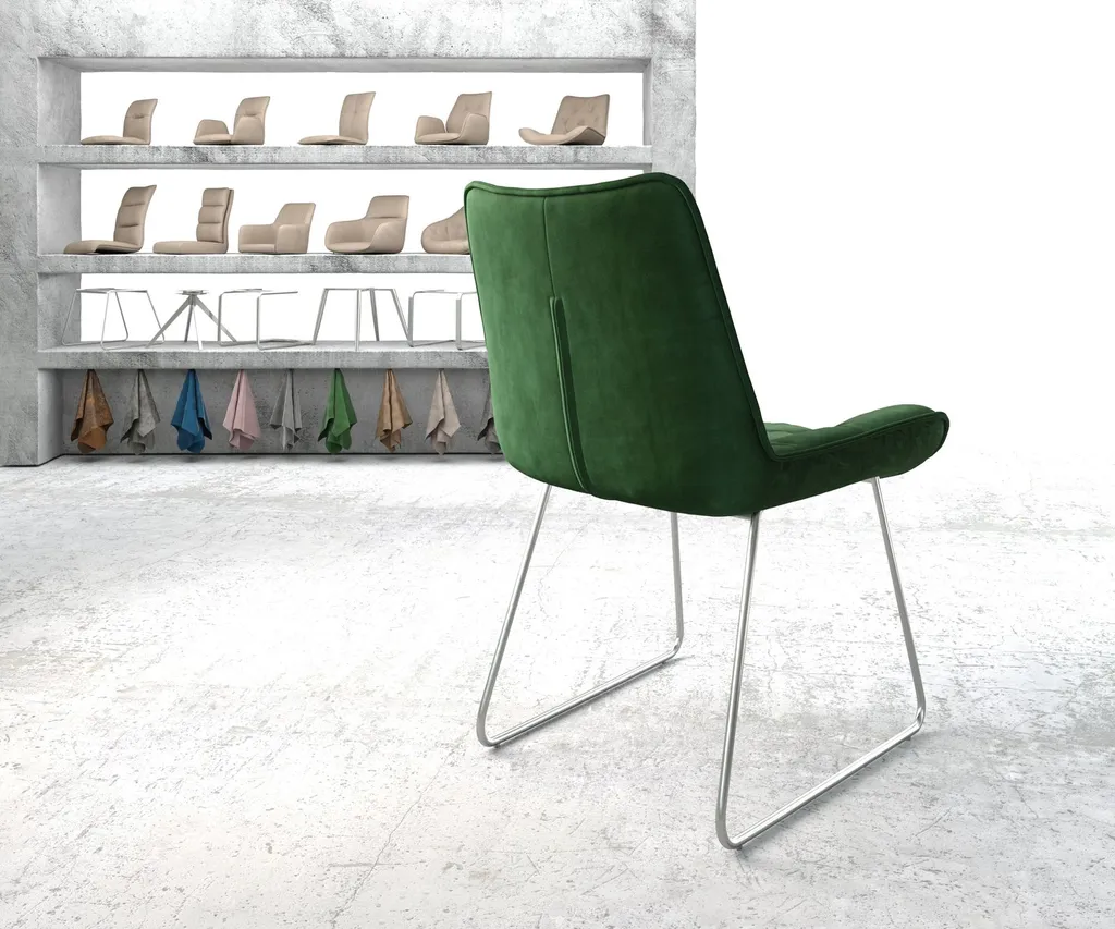 DELIFE Esszimmerstuhl Taimi-Flex Samt Grün Kufengestell Edelstahl
