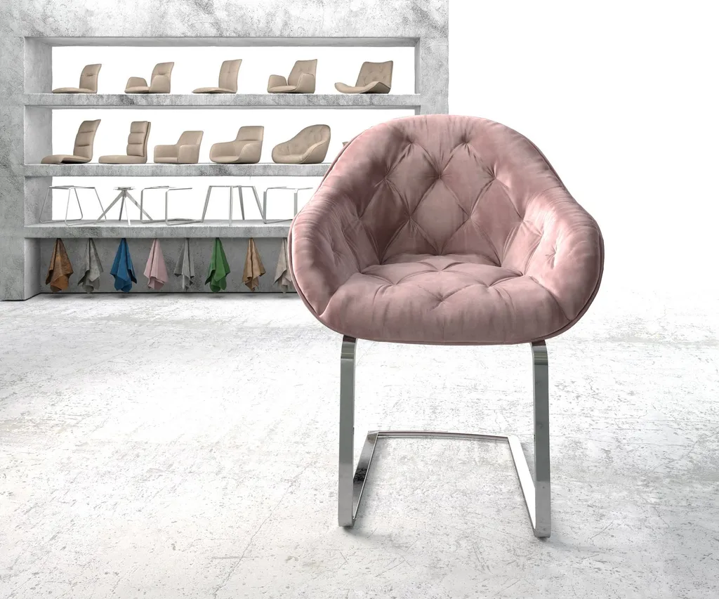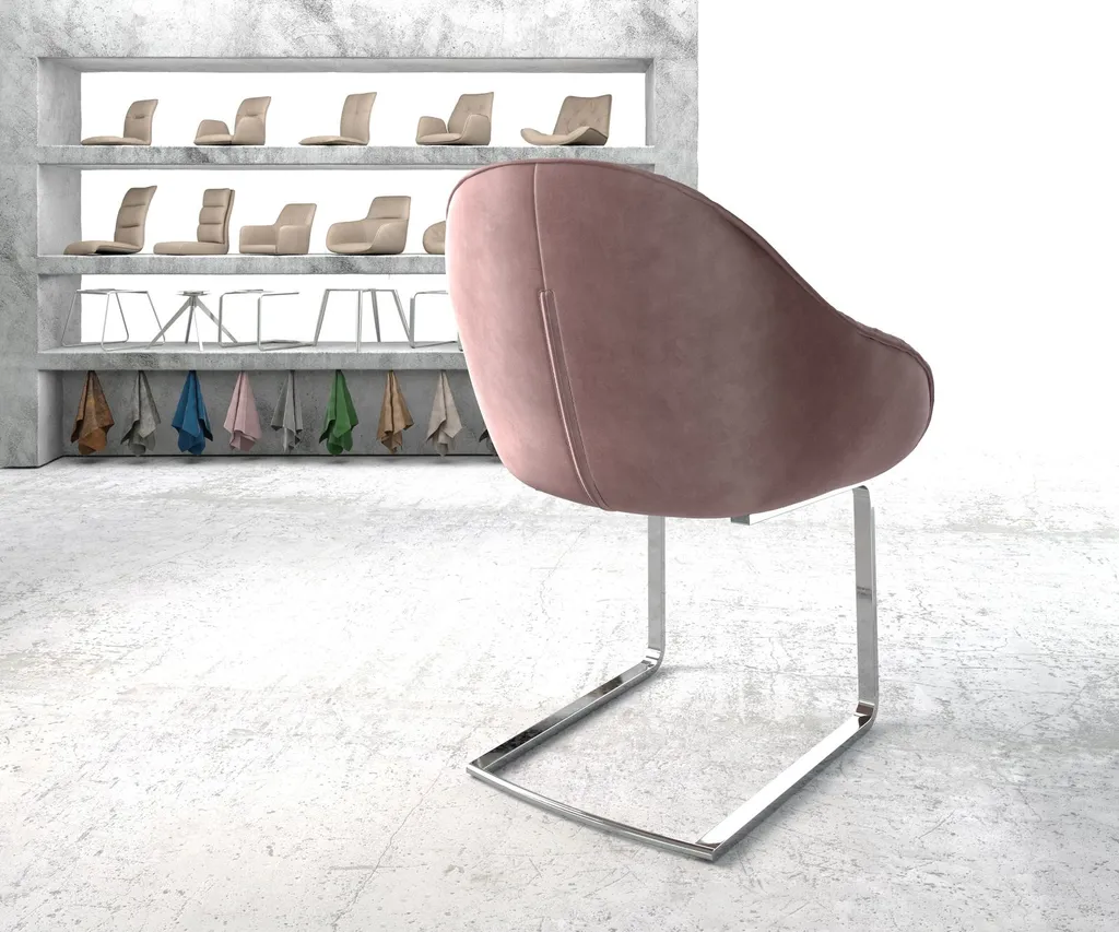 DELIFE Schwingstuhl Gaio-Flex Samt Rosé Freischwinger Flach Chrom