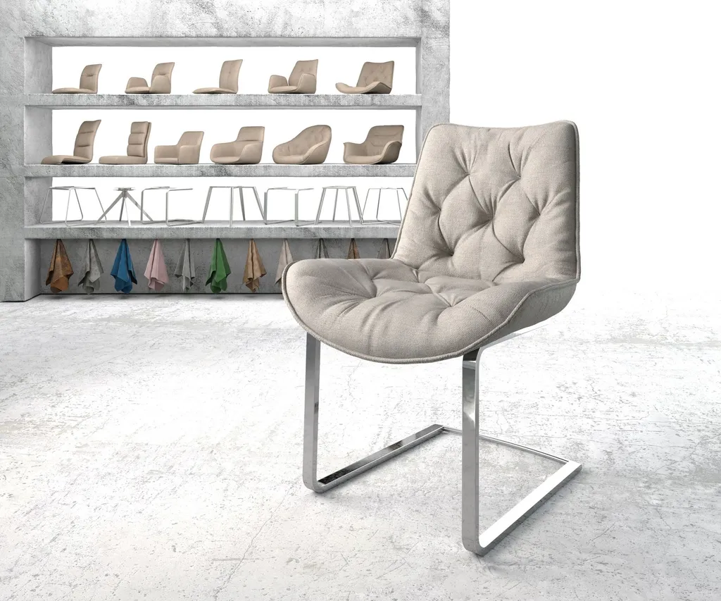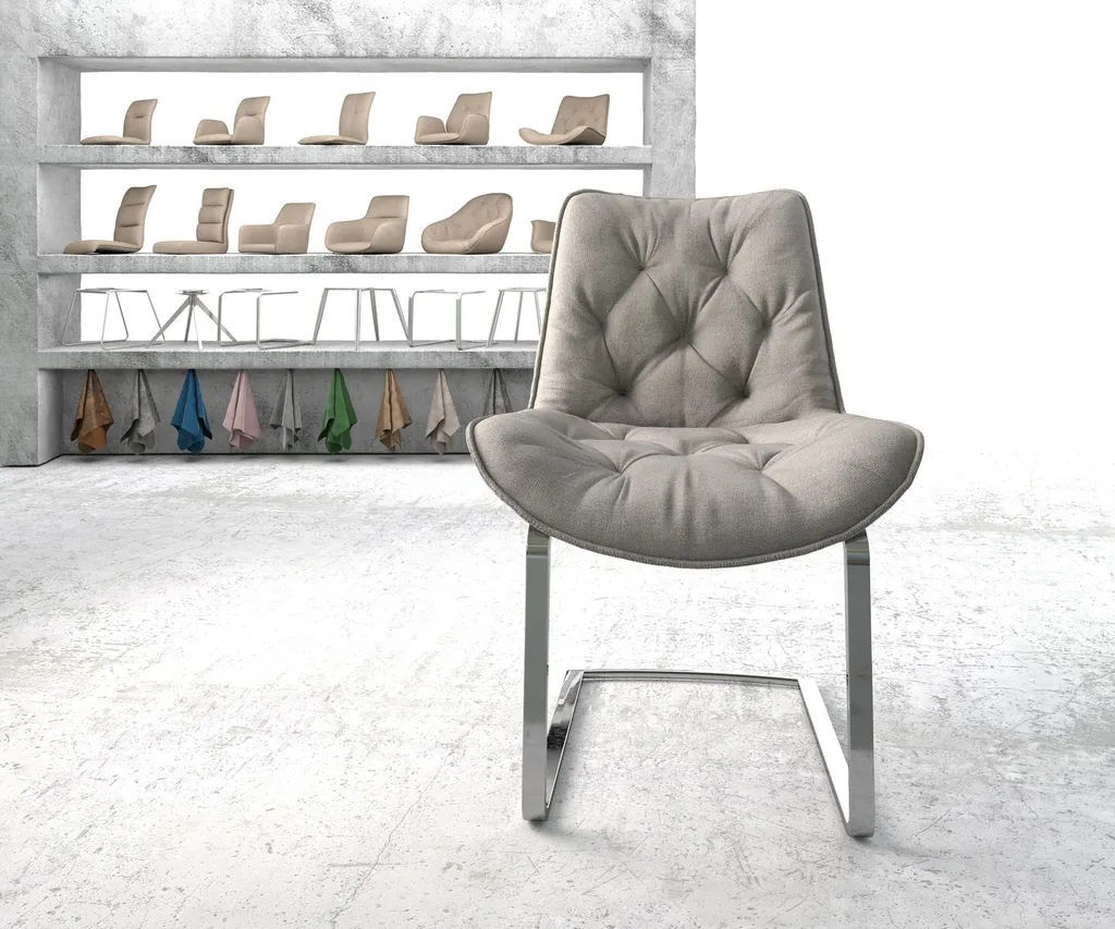 DELIFE Schwingstuhl Taimi-Flex Stripes Hellgrau Freischwinger Flach Chrom