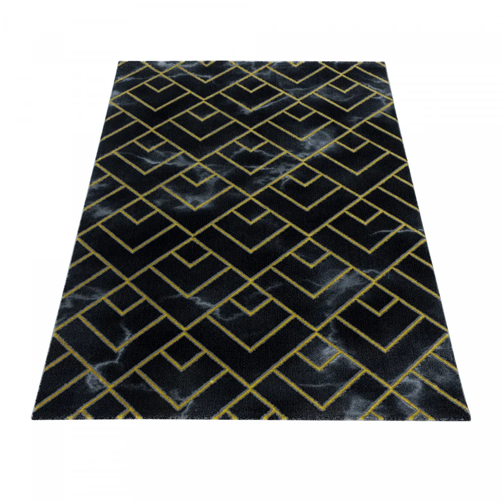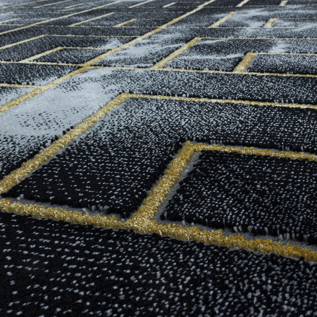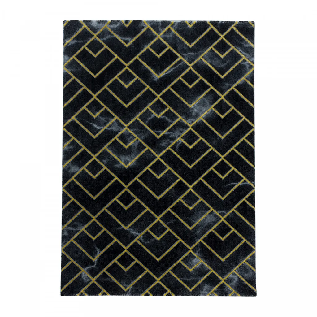Designer Kurzflor Wohnzimmer Teppiche Grau Gold Weich Modern, Marmor Optik 12 Mm, Größe:140 X 200 Cm, Farbe:Schwarz-Gold