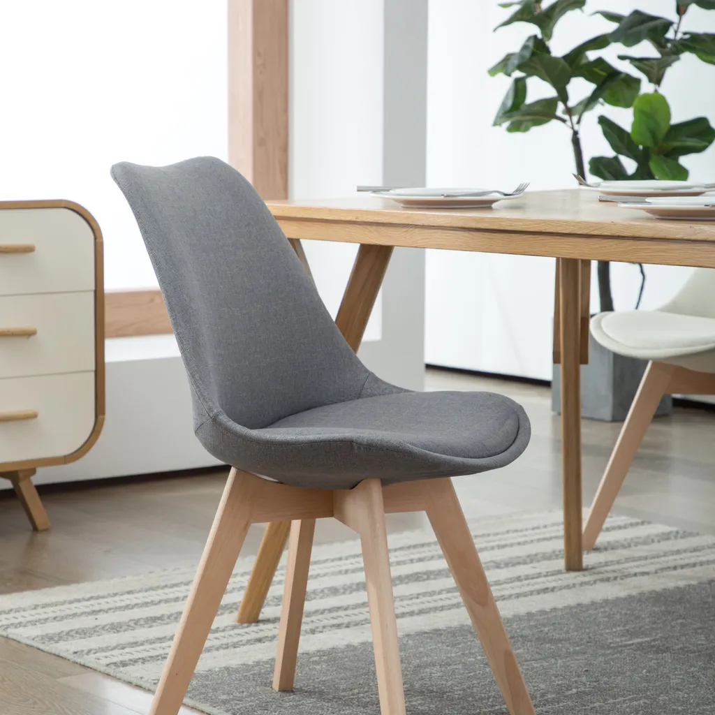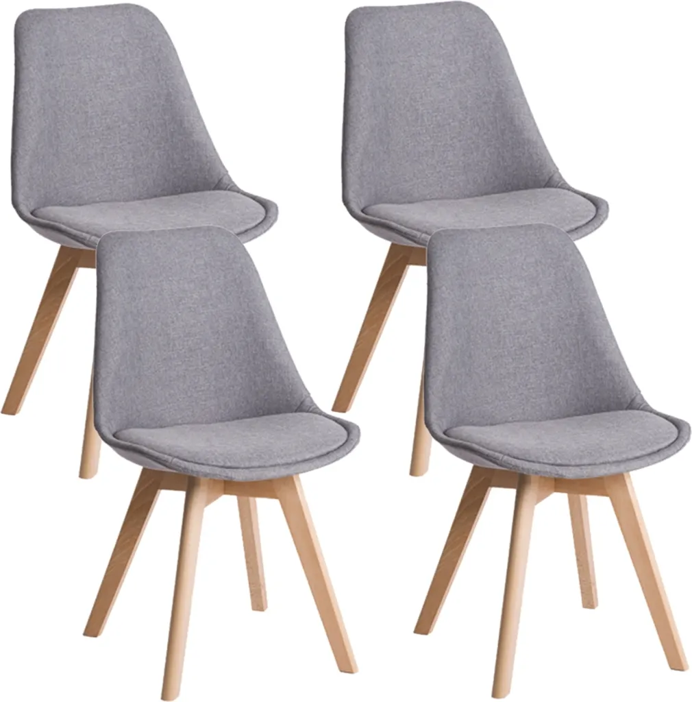 Deuline® Esszimmerstühle Grau-Stoffbezug Esszimmerstuhl Küchenstuhl SGS Massivholz Beine Polsterstuhl Retro Design Stühle Lehnstuhl Oslo 521205 4er-Set