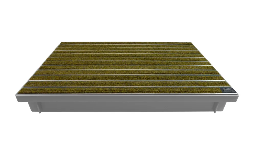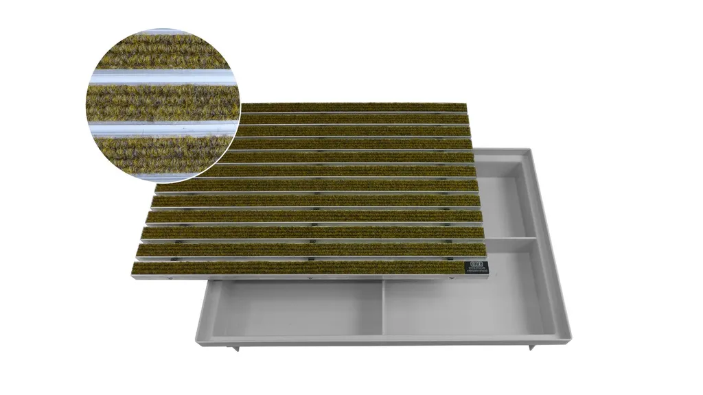 EMCO Eingangsmatte DIPLOMAT Rips Beige 60x40cm 22mm + ACO Bodenwanne Fußmatte Türmatte Abstreifer Fußabtreter