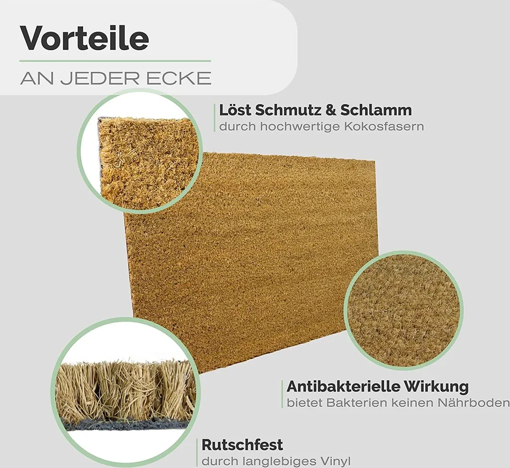 Entrando Fußmatte Aus Kokos – Natur Braun 40×60 Cm – Antibakteriell, Rutschfest, Wetterfest – Optimale Haustür Fussmatte Für Aussen