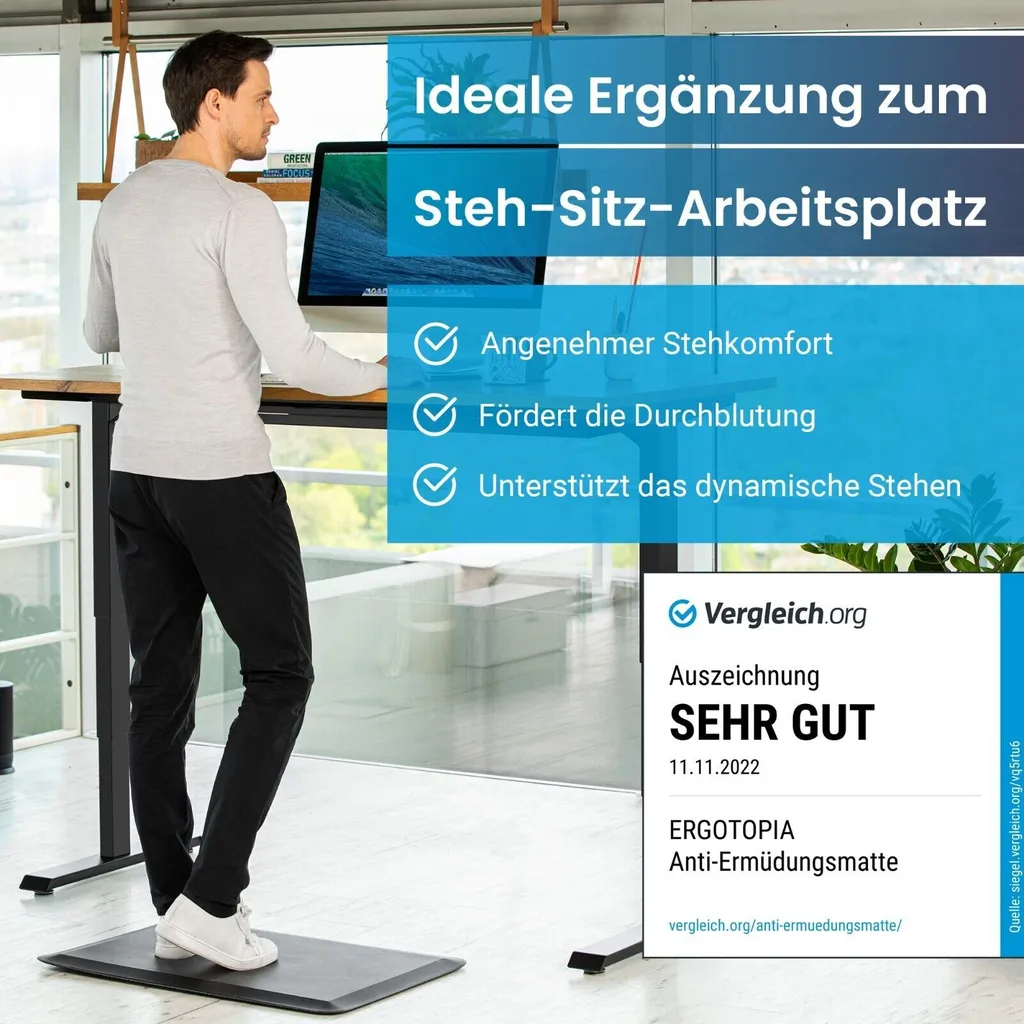 Ergotopia® Anti-Ermüdungsmatte Für Steharbeitsplätze, Ergonomische Arbeitsplatzmatte Für Gesundes & Schmerzfreies Stehen, Rutschfest & Langlebig, Ergonomische Schreibtisch Stehmatte