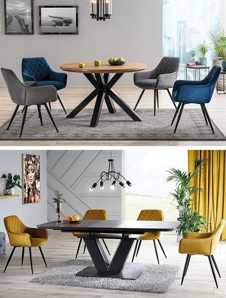 2er Set Esszimmerstuhl Polsterstuhl Stoff Samt Oder Stoff Lederoptik, Farbe:Gelb, Material:Samt