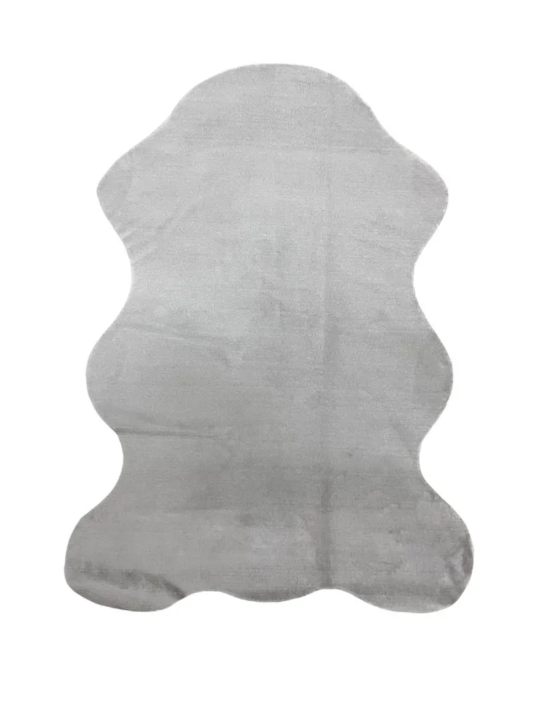 Fellteppich Grau Anti-Rutsch Kunstfell Fellform Felloptik 30 Grad Waschbar 70 X 100
