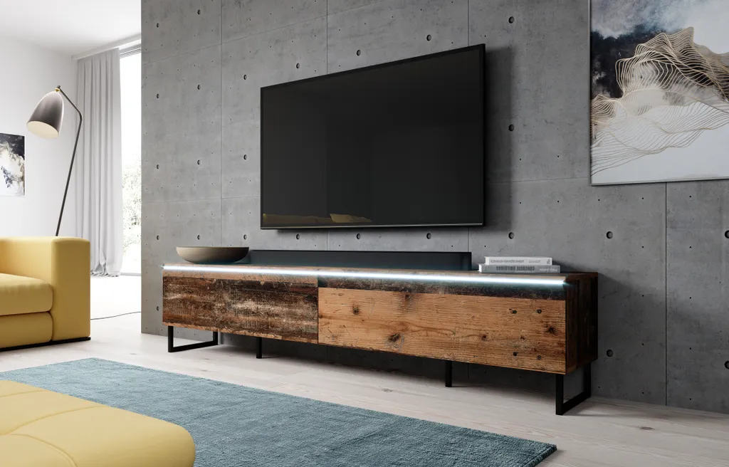 Furnix TV-Kommode Bargo180 Cm Mit LED-Beleuchtung TV-Schrank Metallfüße Old Wood