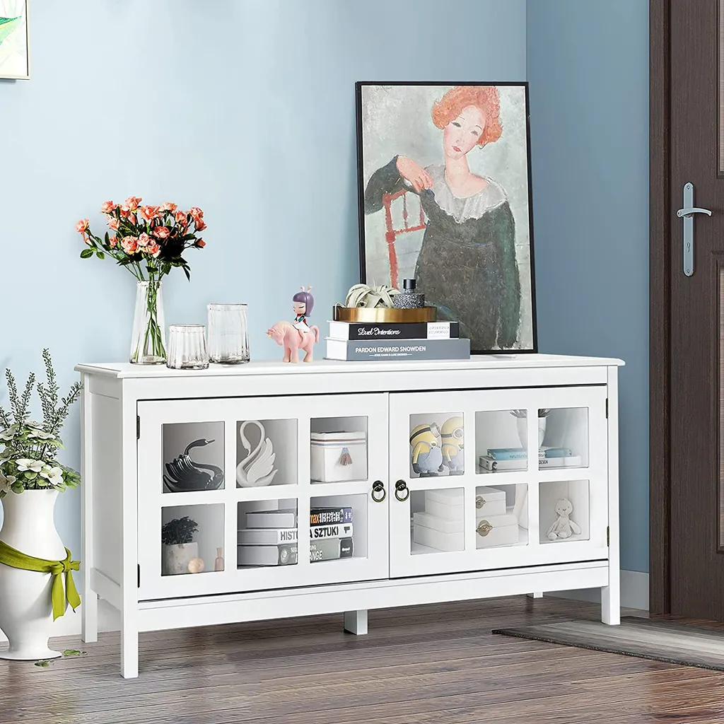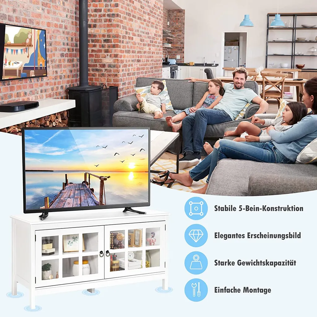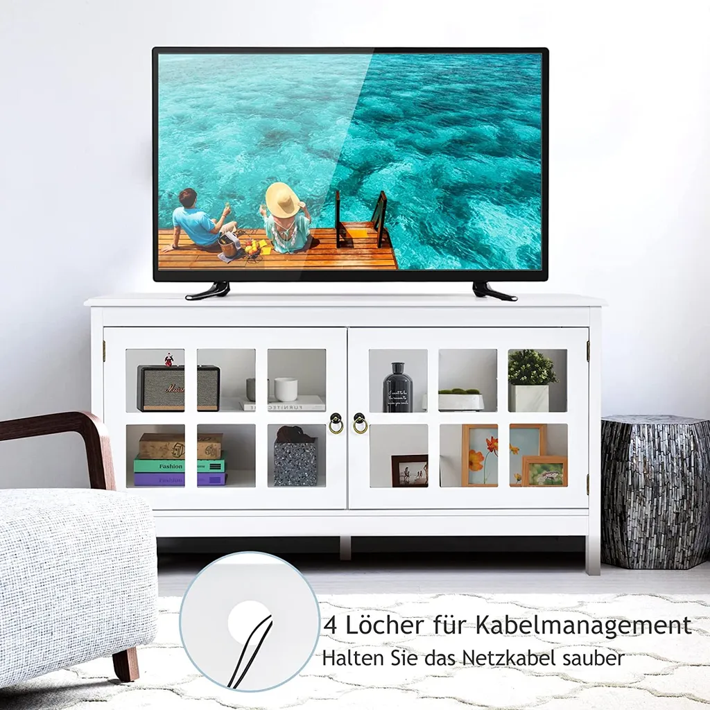 GOPLUS Fernsehschrank Für TV Bis Zu 50 Zoll, Lowboard Fernsehtisch, Gehärtetem Glas Für Leichte Kabelführung, Für Wohnzimmer Balkon Schlafzimmer (Weiß)