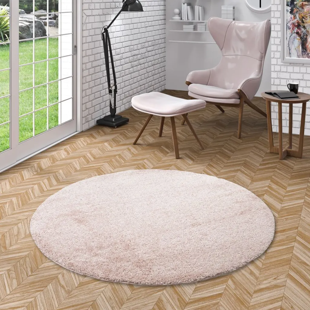 Hochflor Langflor Shaggy Teppich Aloha Rosa Rund, Größe:150 Cm Rund