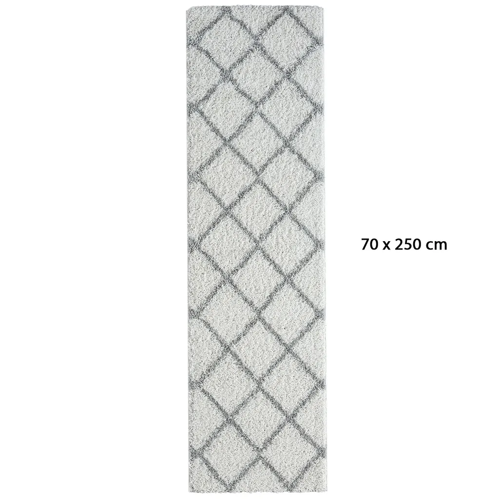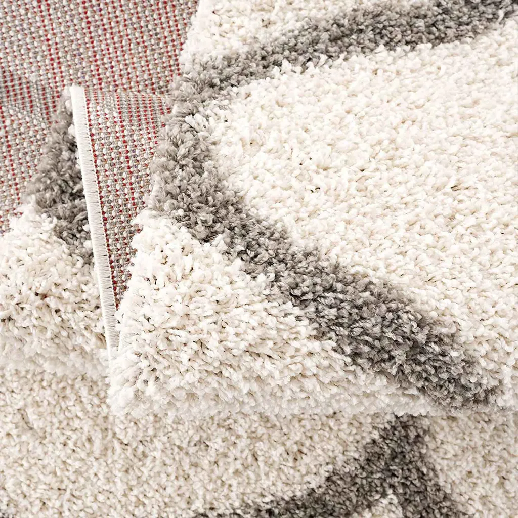 Hochflor Teppich Weicher Wohnzimmer Shaggy Skandi Design Rautenmuster Grau Creme , Maße:160×220 Cm