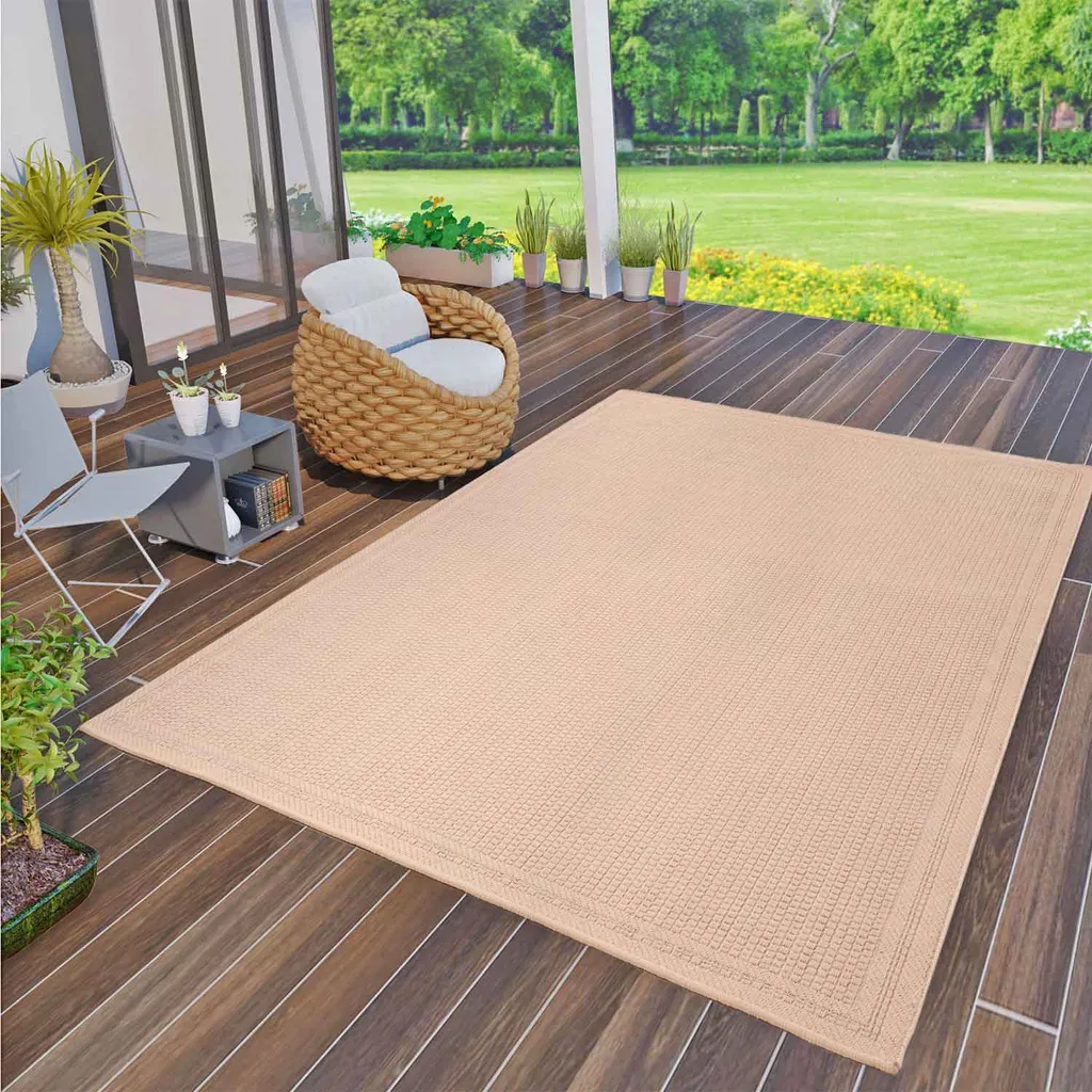 In- Und Outdoor Teppiche Flachgewebe Terrassen Natur Look In Grau & Beige, Farbe:Beige, Maße:80×150 Cm