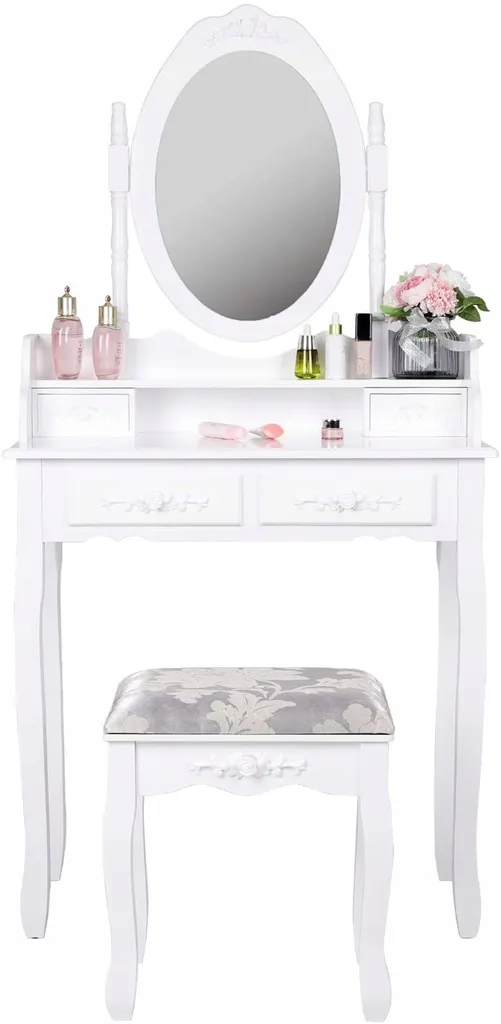 Italform Schminktisch Mit Hocker Und Drehbaren Spiegel Weiß 4 Schubladen 75 X 147 X 40cm
