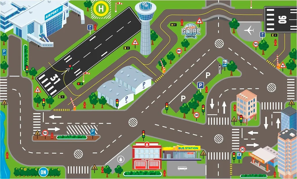 KidsGlobe Spielteppich Flughafen Teppich 72x120cm Mit Vielen LED, Inkl. Batterie