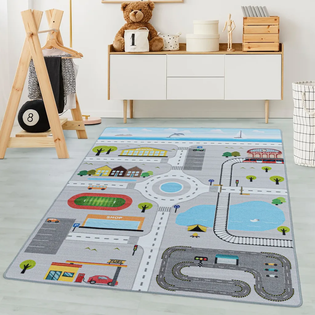 Kinderteppich,Digitaldruck,Verkehr Figur,WaschbarKettelteppich,Farbe:Grau, Farbe:GRAU, Grösse:120 Cm X 170 Cm