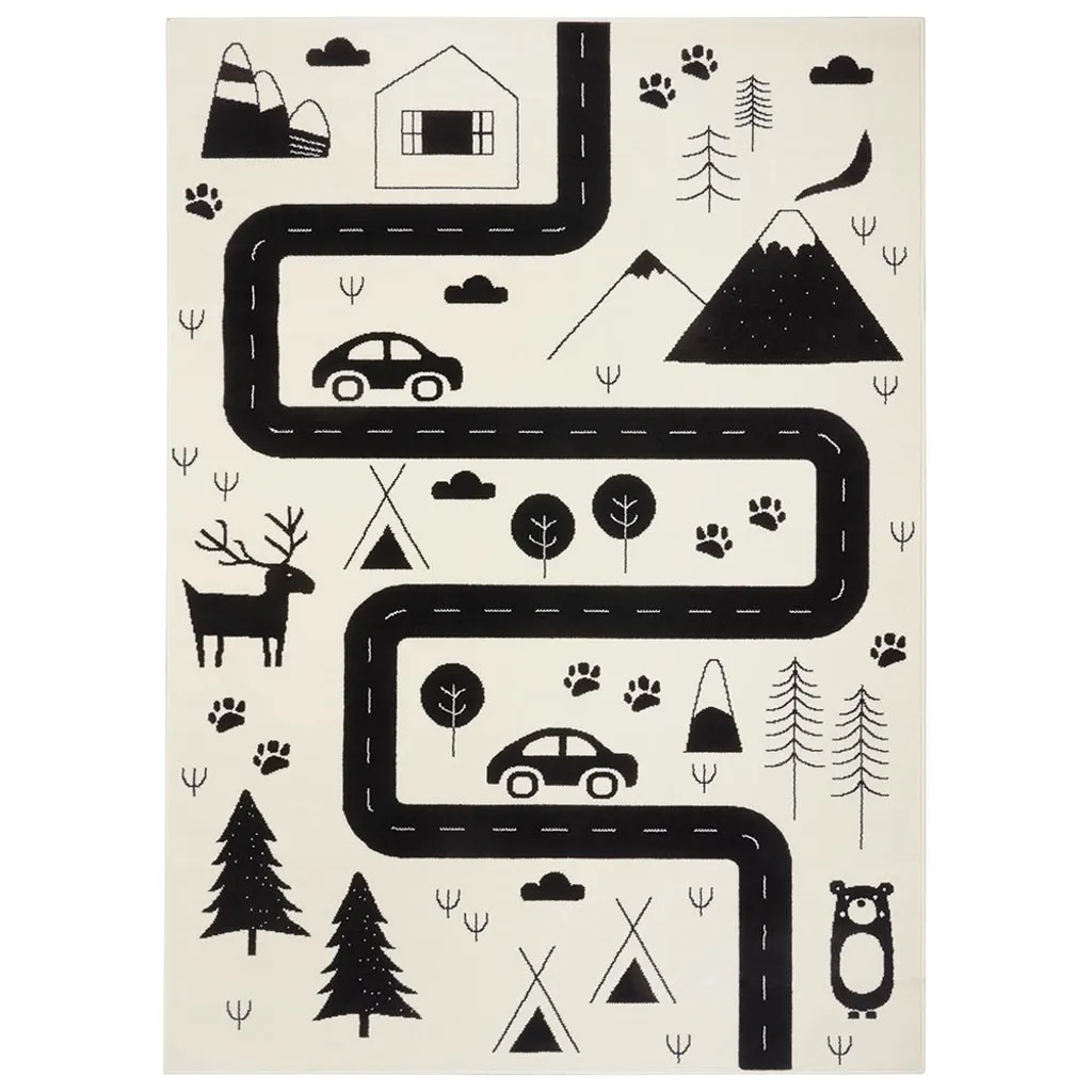 Kinderteppich Kurzflor Avenue Straße Creme Schwarz, Größe:120×170 Cm