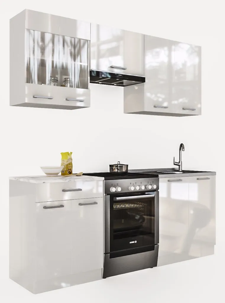 Held Singleküche Mit E-Geräten – 210 Cm Breit – Hochglanz Creme – Vancouver