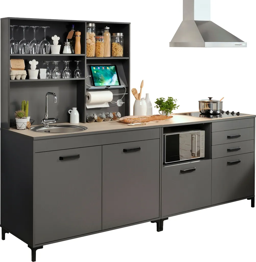Küchenblock Mit Glaskeramikkochfeld White Classic 270 Cm In Graphit Grau Nachbildung