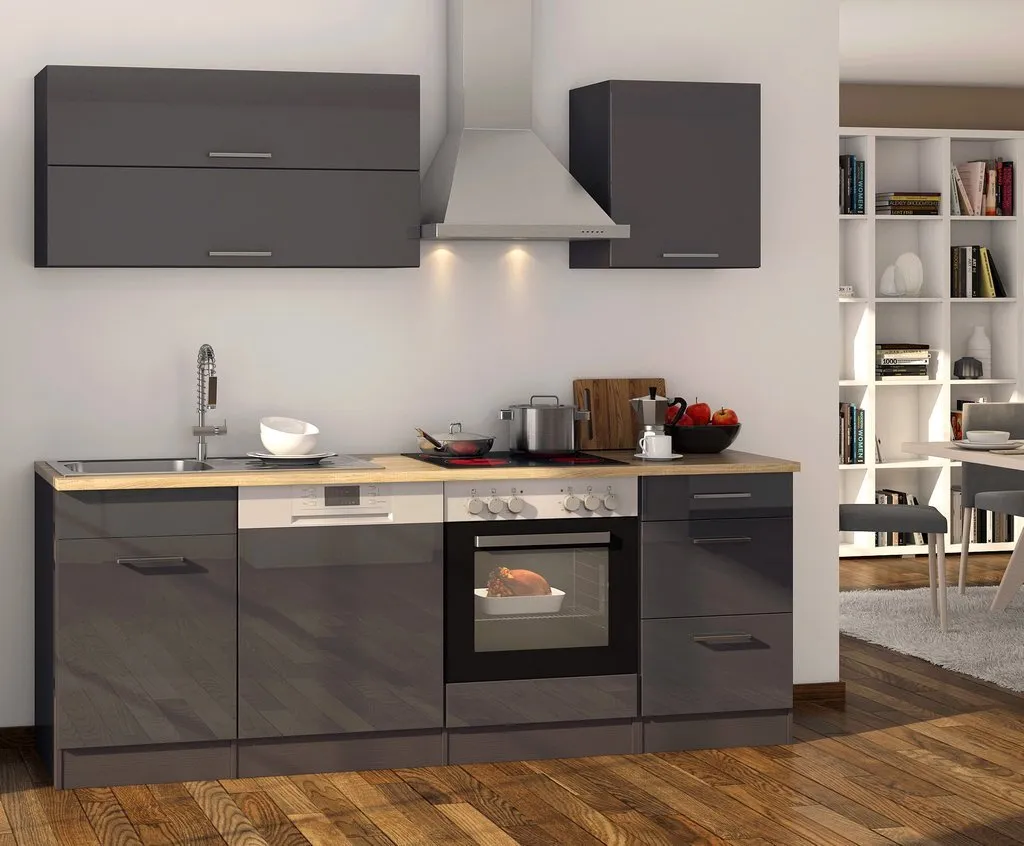 Küchenblock Mailand 220 Cm Grau Hochglanz Ohne Elektrogeräte Mit Spüle (Geschirrspüler Geeignet)