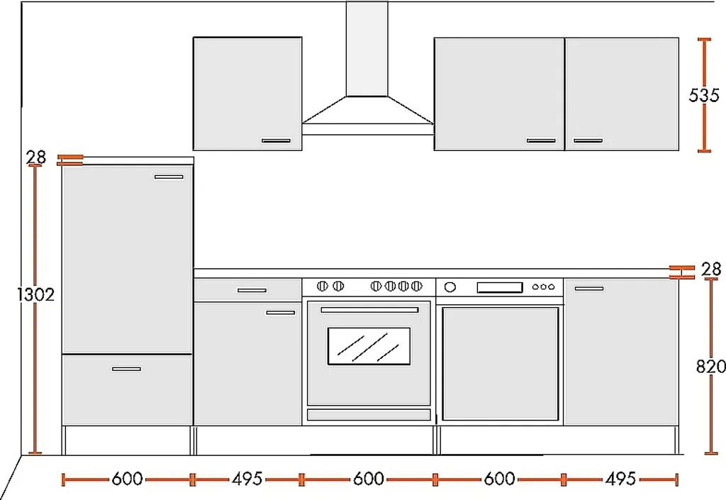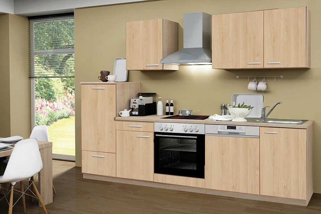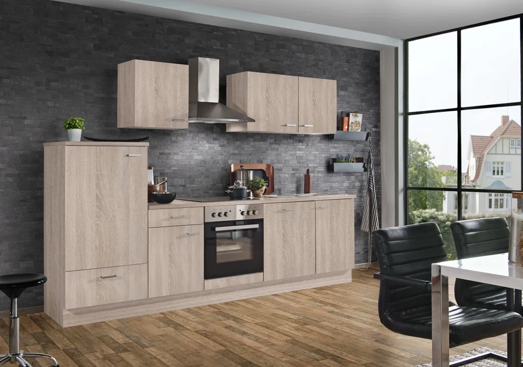 Respekta Küchenzeile Küche Einbauküche Leerblock 270cm Eiche Grau Ohne Geräte