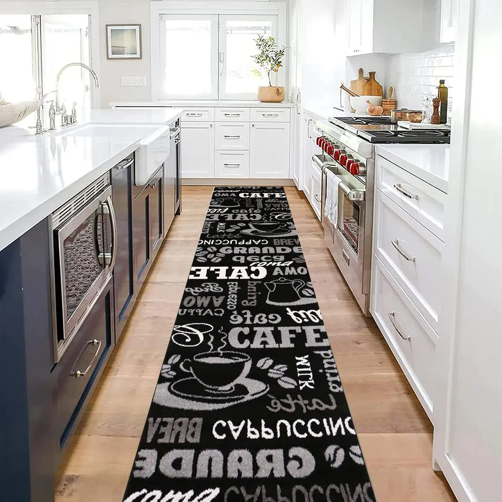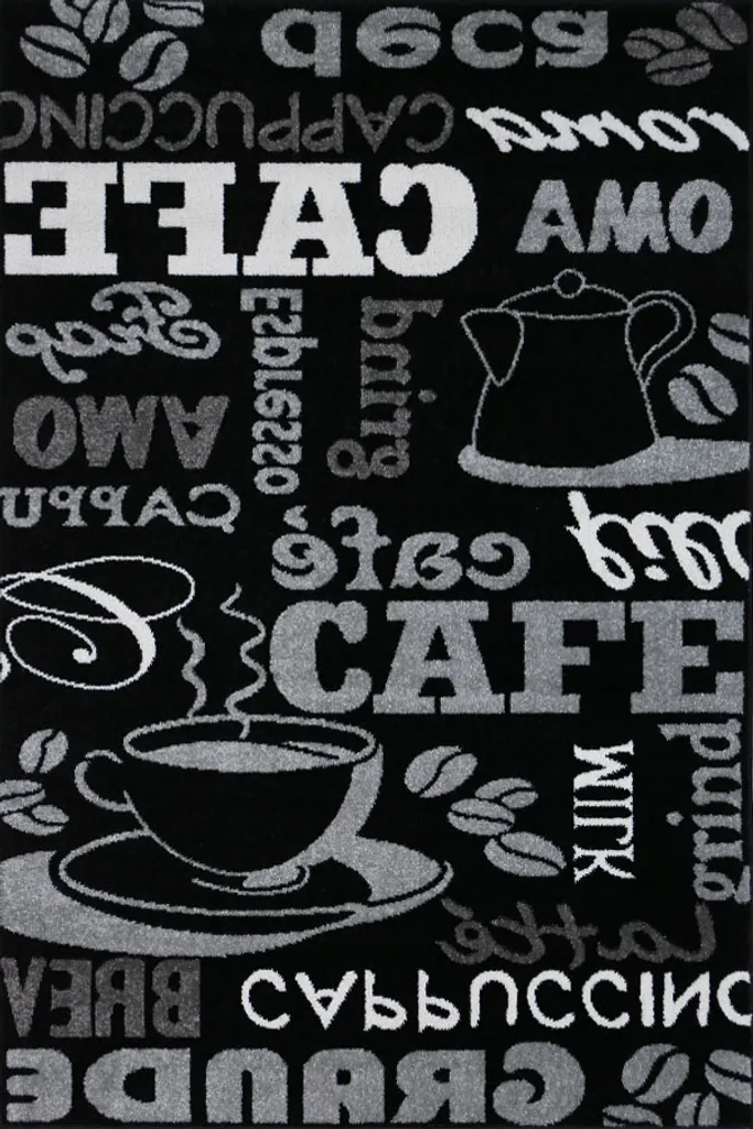 Küchenteppich Teppichläufer Coffee Design Modern Kaffee Muster In Schwarz Ideal Für Die Lounge Oder Küche, Maße:120×170 Cm
