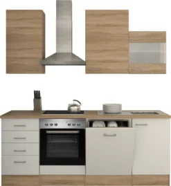 Küchenzeile Mit E-Geräten & Geschirrspüler – 220 Cm Breit – Weiß Sonoma Eiche – Salerno