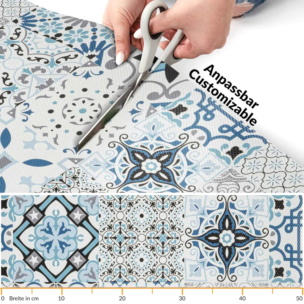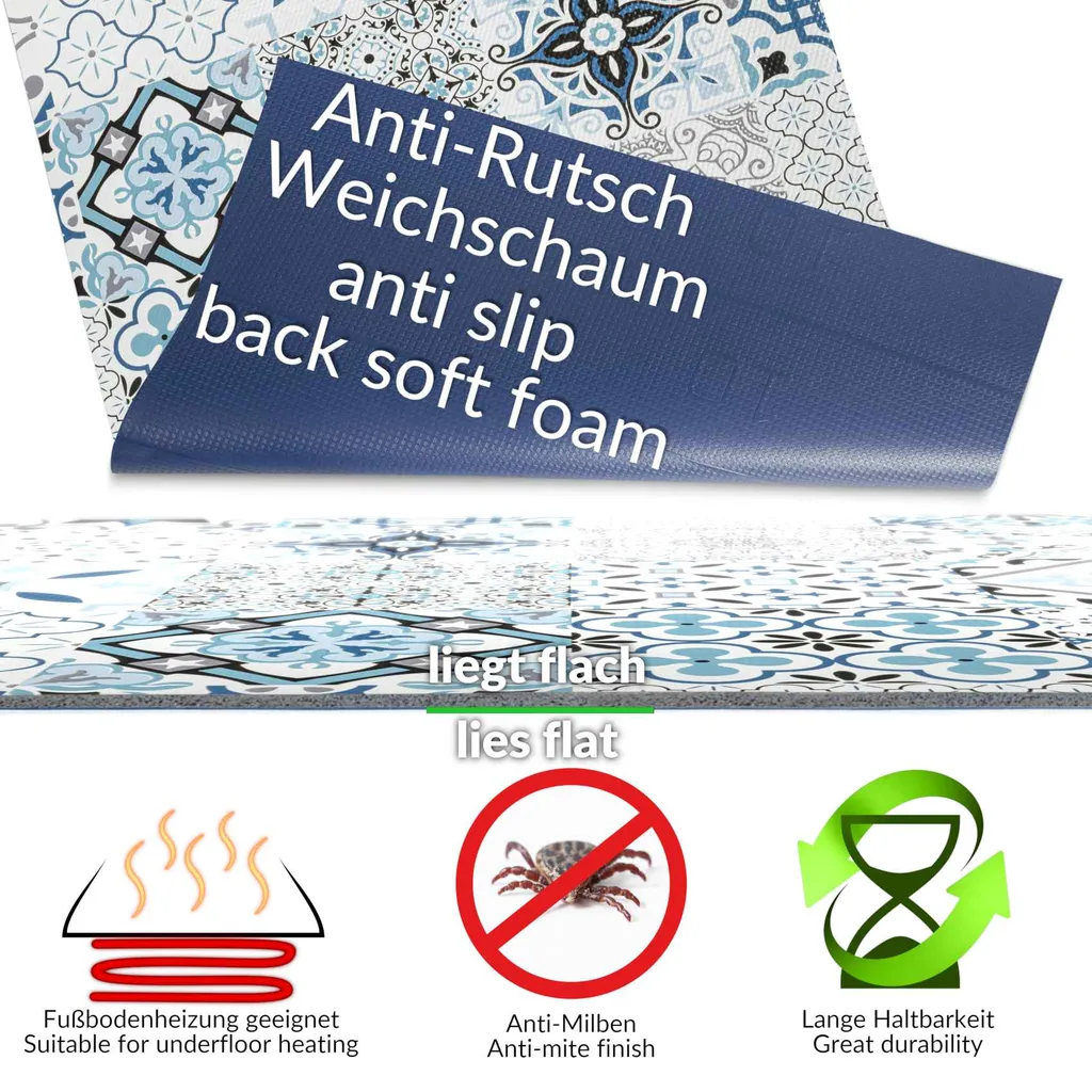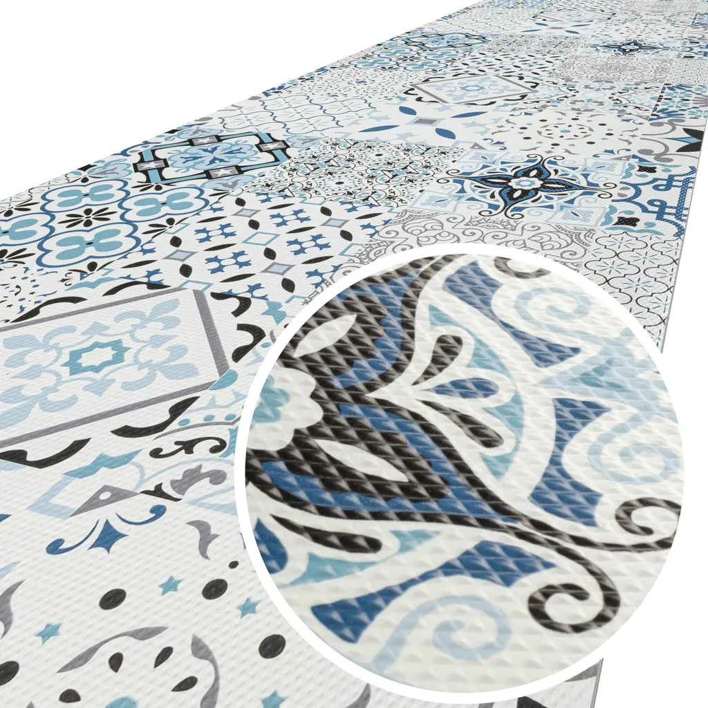 Läufer Küchenläufer Abwischbar Flurläufer Teppichläufer MIRZA Blau Azulejos Robust Breite 48cm Länge 180cm