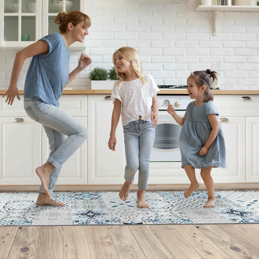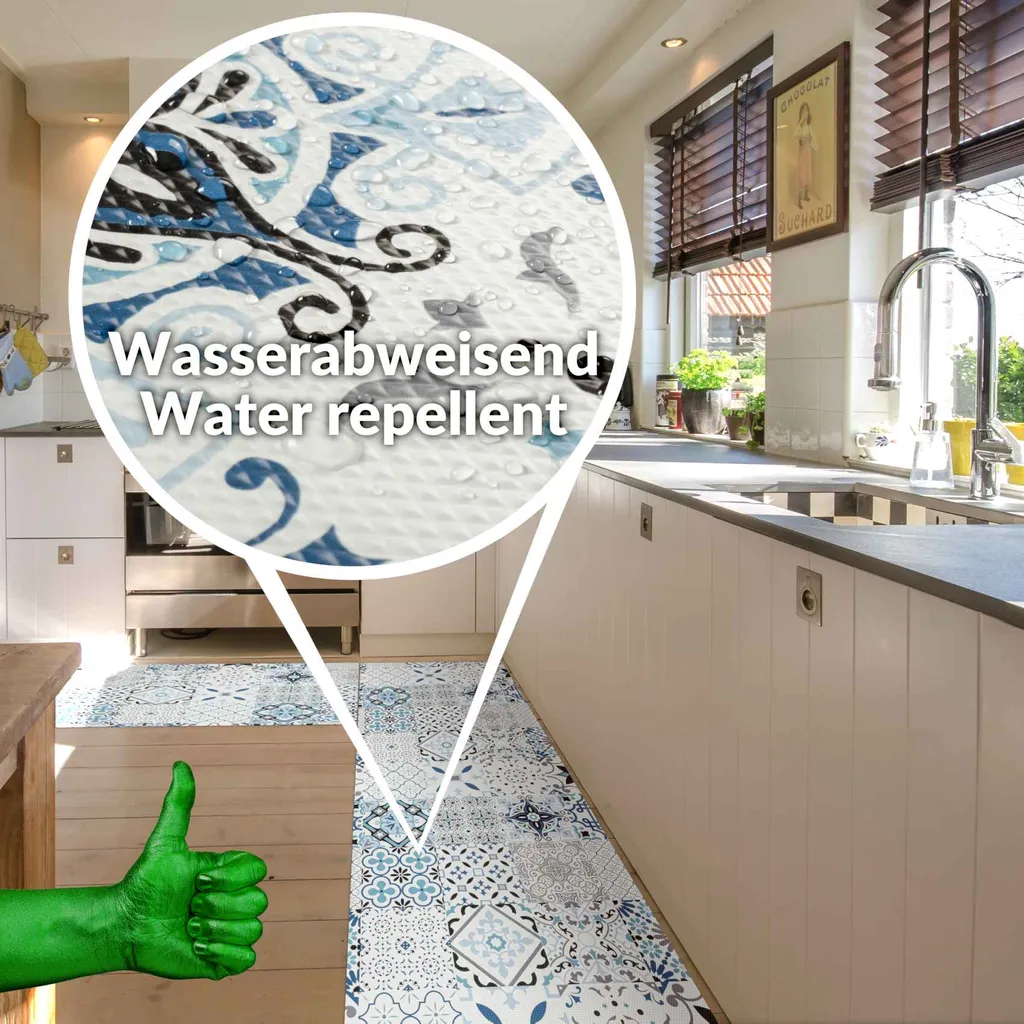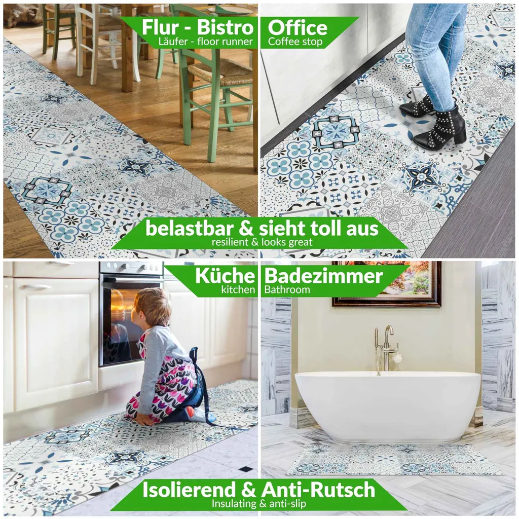 Läufer Küchenläufer Abwischbar Flurläufer Teppichläufer MIRZA Blau Azulejos Robust Breite 48cm Länge 180cm