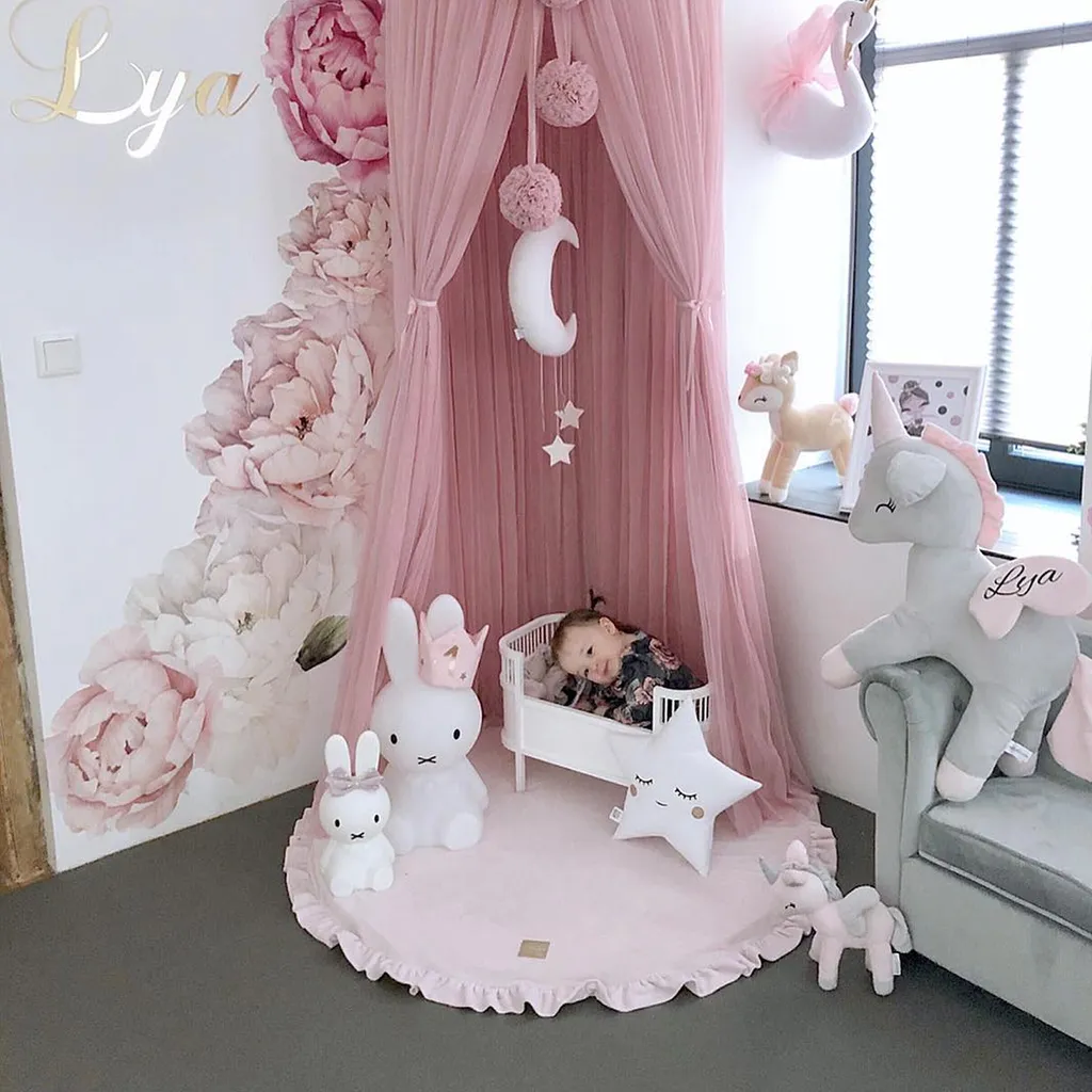 MeowBaby Baby Spielmatte Rund Mit Volant, Rosa