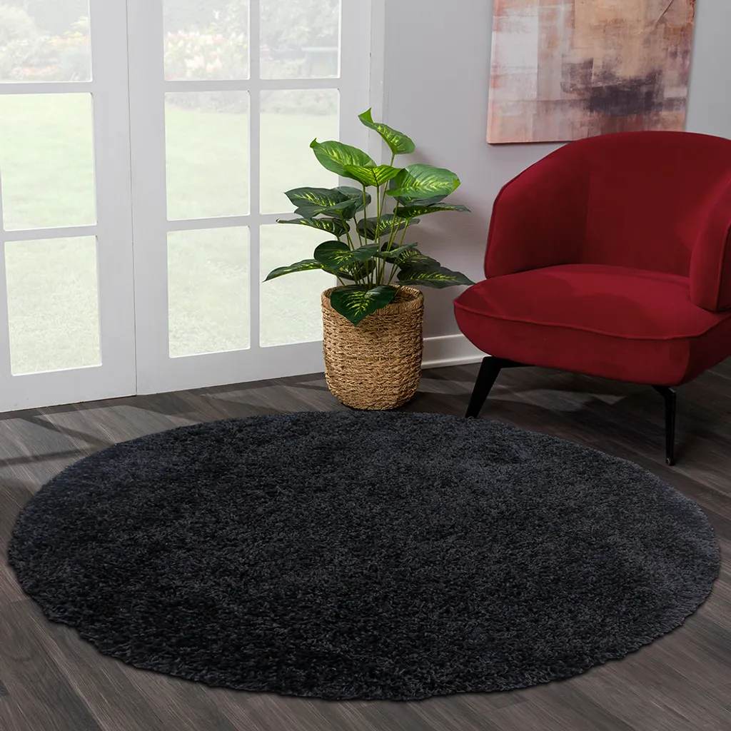 Merinos Shaggy Plus Black Hochflor Rund, Größe:120 X 120 Cm