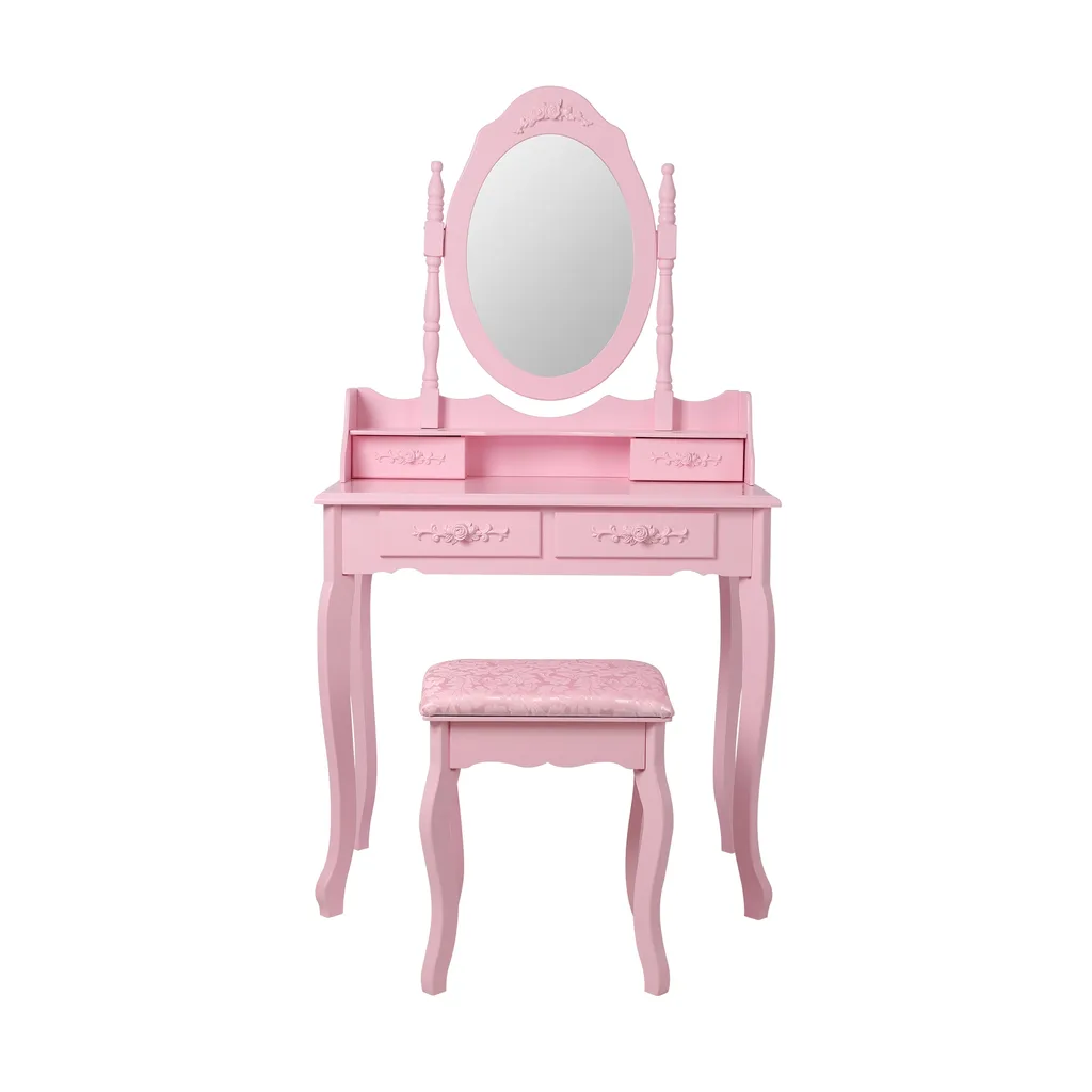 ML-Design Schminktisch Mit Hocker, Spiegel, 4 Schubladen, 75x140x40 Cm, Pink, Landhausstil, Kosmetiktisch Für Damen & Mädchen, Frisierkommode Aus MDF Holz, Kommode Make-up Tisch