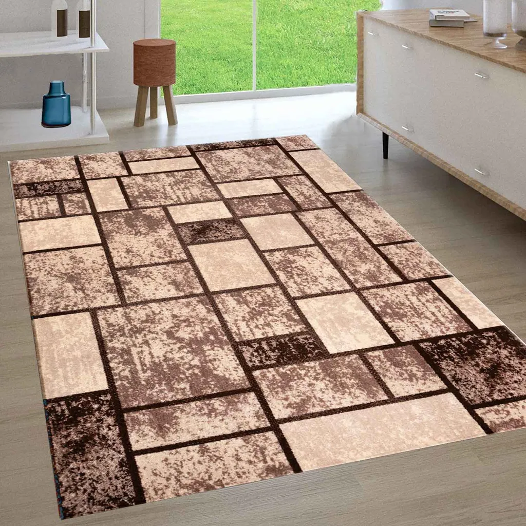 Moderner Teppich Wohnzimmer Geometrisches Muster Meliert In Beige & Braun, Maße:200×280 Cm