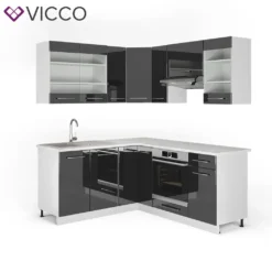 Vicco Eckküchenzeile Fame-Line Weiß Anthrazit Hochglanz 160,5 X 190 Cm Holzwerkstoff
