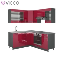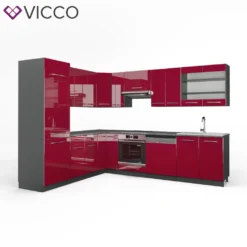 Vicco Eckküchenzeile Fame-Line Anthrazit Bordeaux-Rot Hochglanz 160,5 X 190 Cm Holzwerkstoff