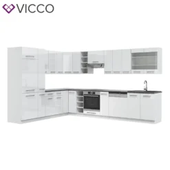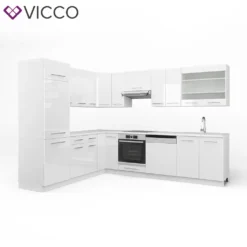 Vicco Eckküchenzeile Fame-Line Weiß Hochglanz 227 X 287 Cm Holzwerkstoff